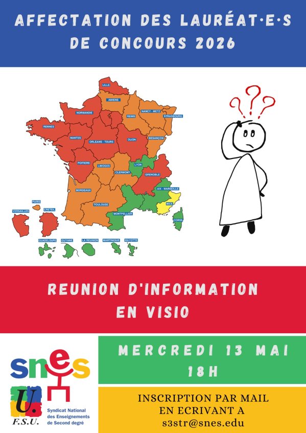 Vous êtes ici : Accueil Catégories Etudiants et stagiaires Affectation des lauréats des concours 2026 10 avril 2026 Catégories Affectation des lauréats des concours 2026 Imprimer l'article Sous réserve de la publication de la note ministérielle qui parait généralement mi-avril.
